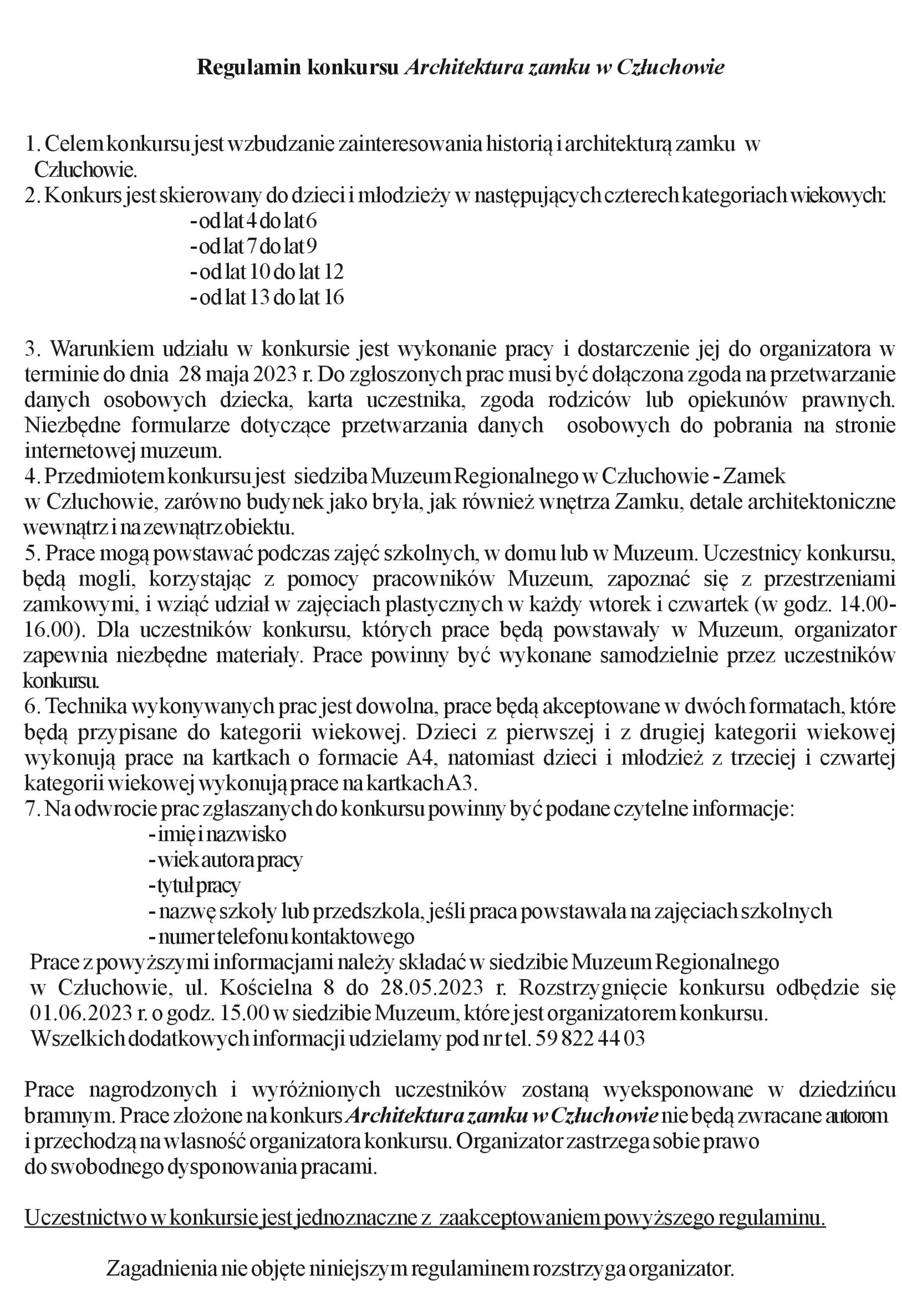 Zapraszamy dzieci i młodzież do udziału w IX edycji konkursu plastycznego Architektura zamku w Człuchowie.